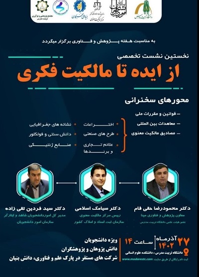 نخستین نشست تخصصی «از ایده تا مالکیت فکری» به مناسبت هفته پژوهش و فناوری