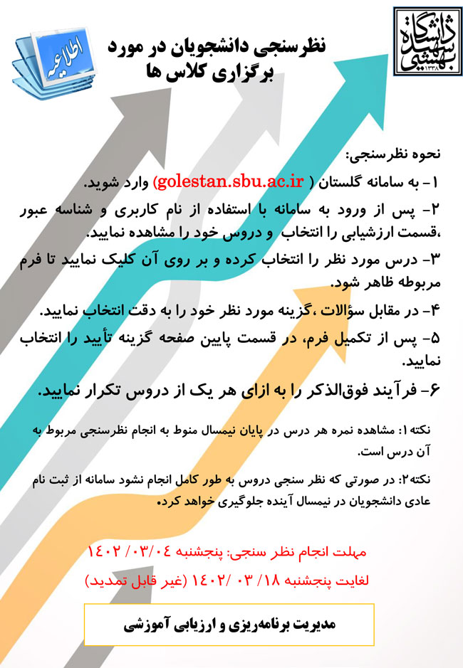 به اطلاع می‌رساند مهلت انجام نظرسنجی دانشجویان درباره برگزاری کلاس‌ها از طریق