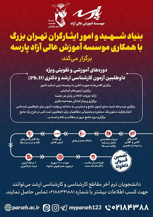 بنیاد شهید و امور ایثارگران تهران بزرگ با همکاری موسسه آموزش عالی آزاد پارسه برگزار می کند